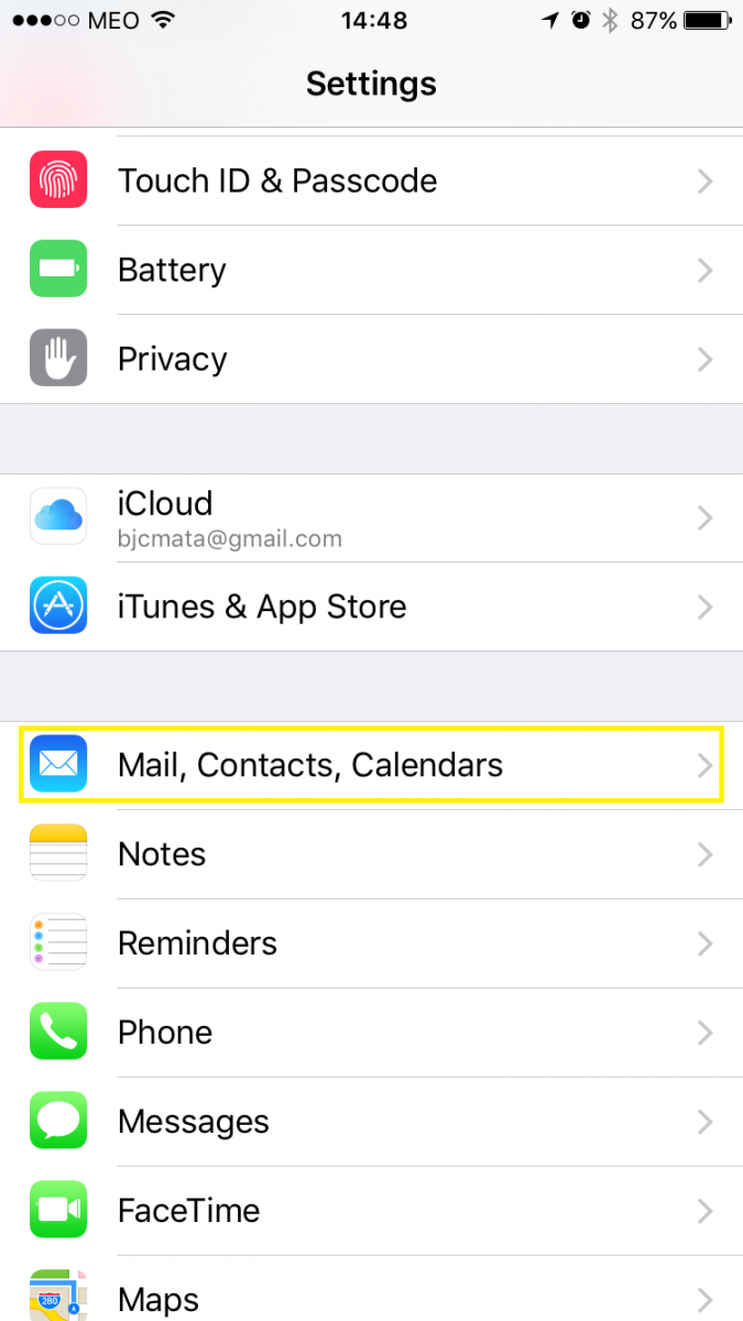 Para configurar o cliente de e-mail no Iphone deverá seguir os seguintes passos: