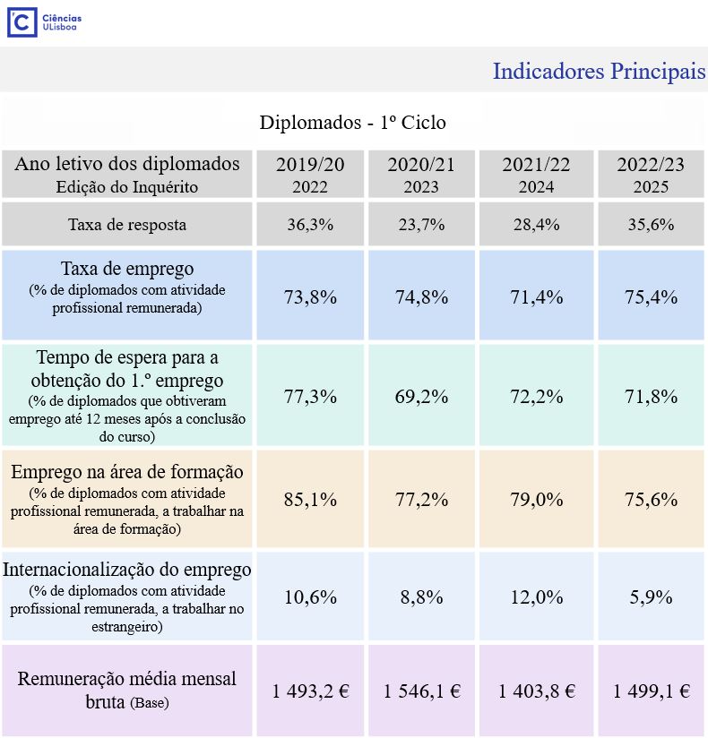 A análise de resultados foi elaborada pela Área de Estudos, Planeamento e Qualidade de Ciências ULisboa, em colaboração com o Gabinete de Empregabilidade.