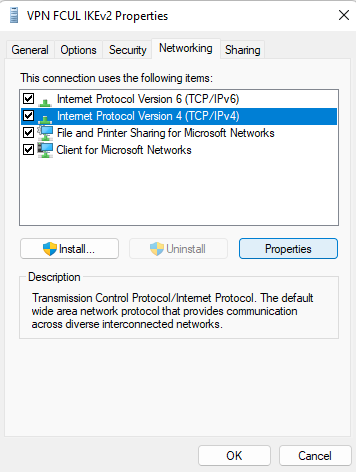 Ir ao separador “Networking”, selecionar “Internet Protocol Version 4 (TCP/IPv4)” e de seguida clicar em “Properties”.