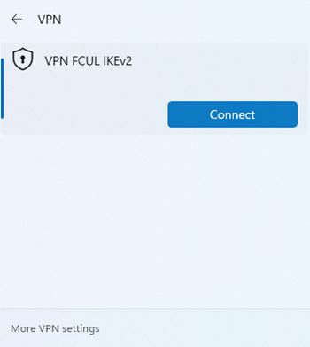 Agora que a ligação está devidamente configurada, pode ligar-se à VPN da FCUL. Vá ao ícone de rede e selecione a VPN que acabou de criar.