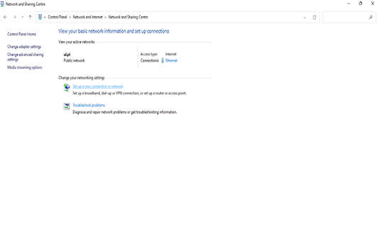 Selecione "Set up a new connection or network" (Configurar uma nova ligação ou rede).