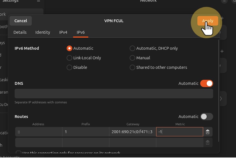 2- Desligue as rotas automáticas para IPv4 e IPv6.