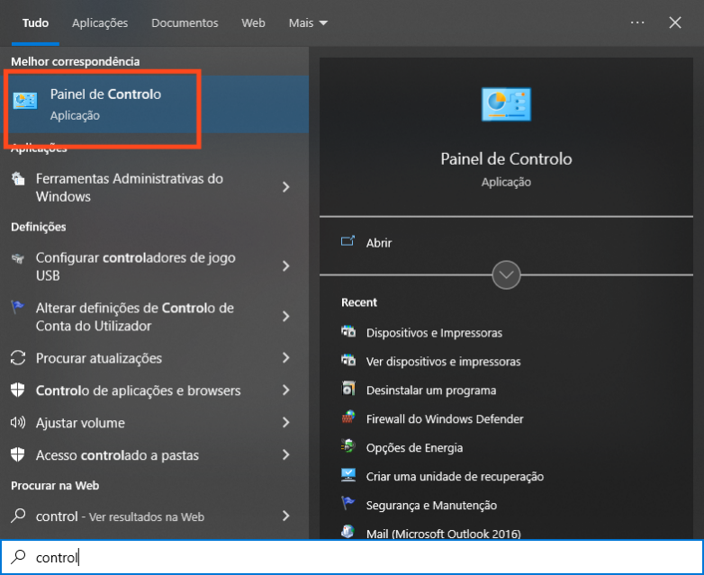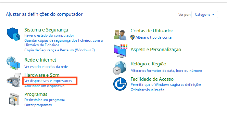 Para colocar a impressora por omissão, vá ao Painel de controlo: