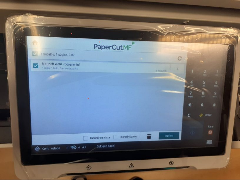 Na parte de Libertar Trabalhos aparece-lhe esta janela onde seleciona o trabalho de impressão e pode apagar ou imprimir no botão Imprimir: