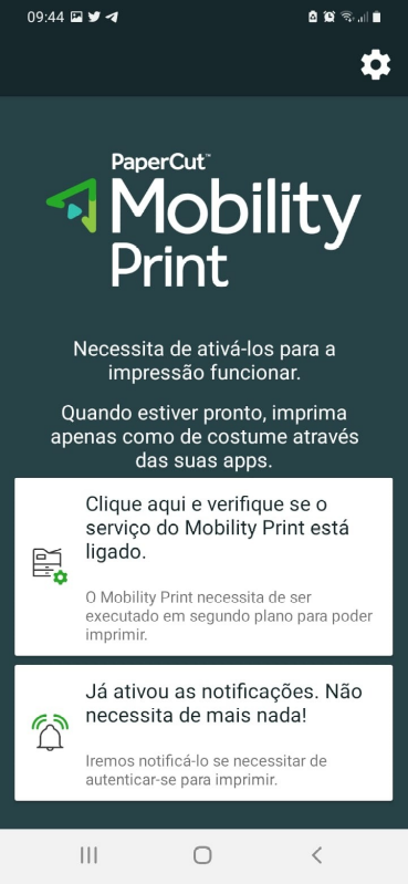 Verifique se o serviço do Mobility Print está ligado e as notificações desse serviço também, clicando em cada um deles: