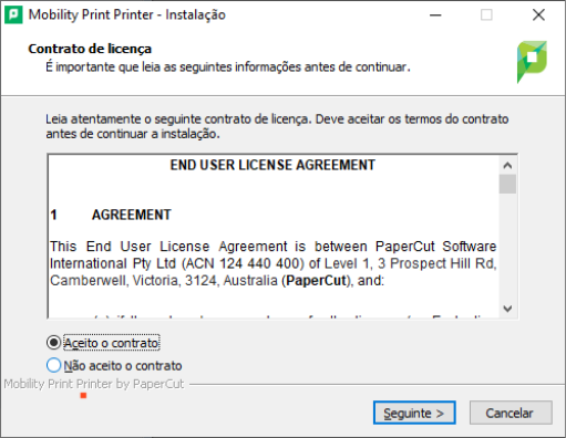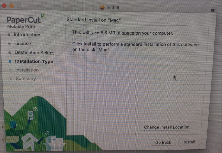 Clicar duas vezes para instalar o pacote Papercut Mobility Print Client.pkg: