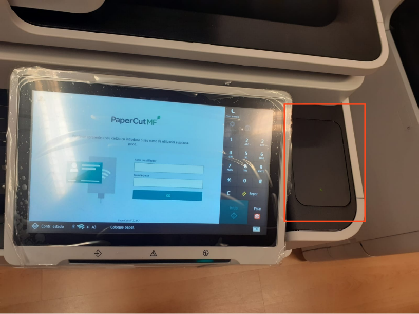 Passar o cartão de Ciências no lado direito, como mostra a imagem no retângulo vermelho. Esta é a forma preferencial e mais cómoda para o utilizador.