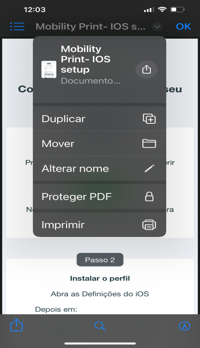 Abrir documento a imprimir. Abrir o menu … e selecionar imprimir: