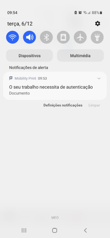 Deverá em seguida surgir uma notificação confirmando a submissão do documento ao sistema de impressão. O documento pode ser impresso em qualquer equipamento ligado ao sistema de impressão.