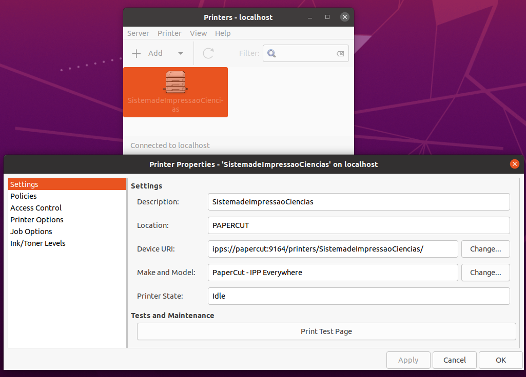 Caso se encontre na rede do departamento de informática, deverá utilizar -host papercut.fc.ul.ptSelecionar o SistemaDeImpressaoCiencias