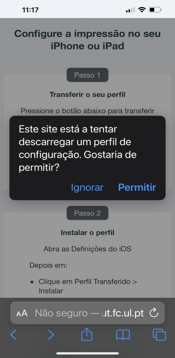 Permitir o download do perfil de configuração, carregar no Permitir: