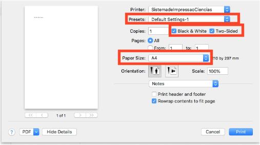 Selecionar Black & White, Two-Sided, Paper Size: A4: